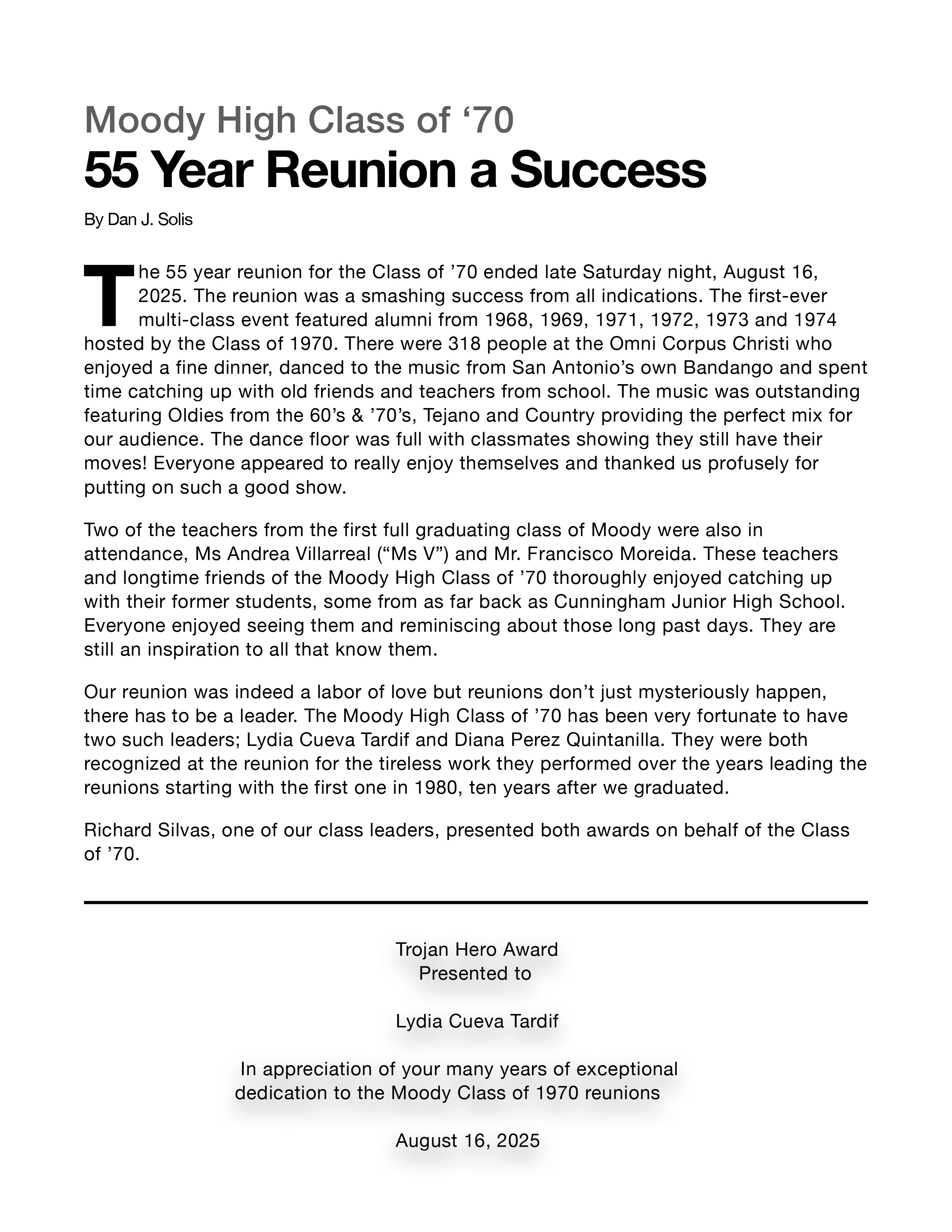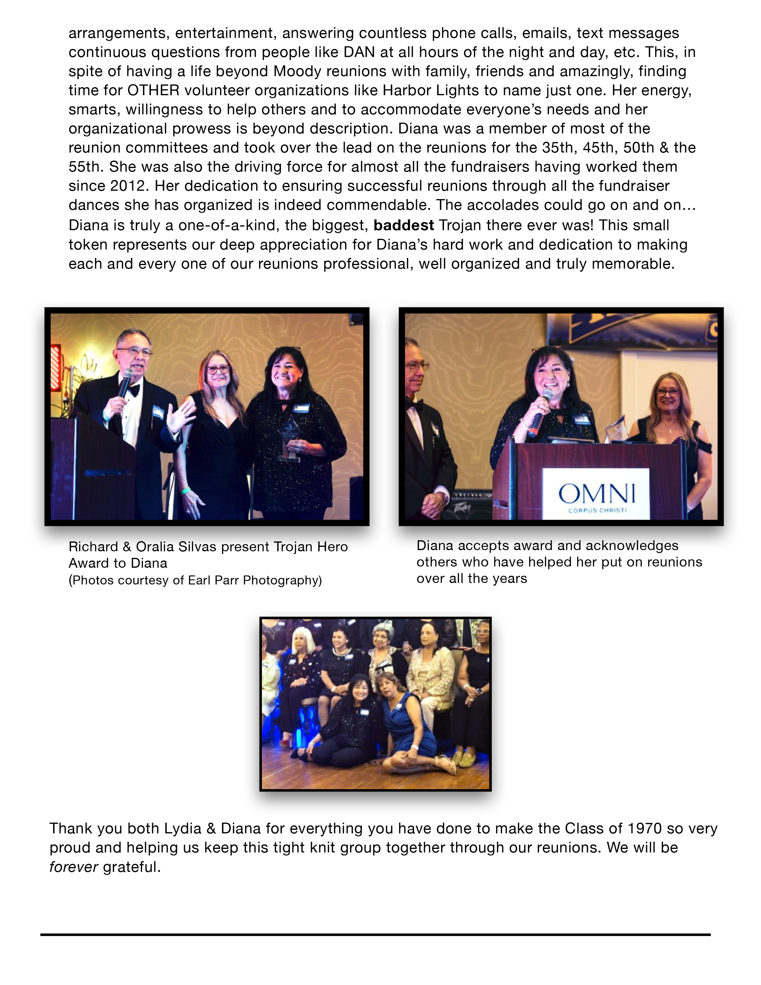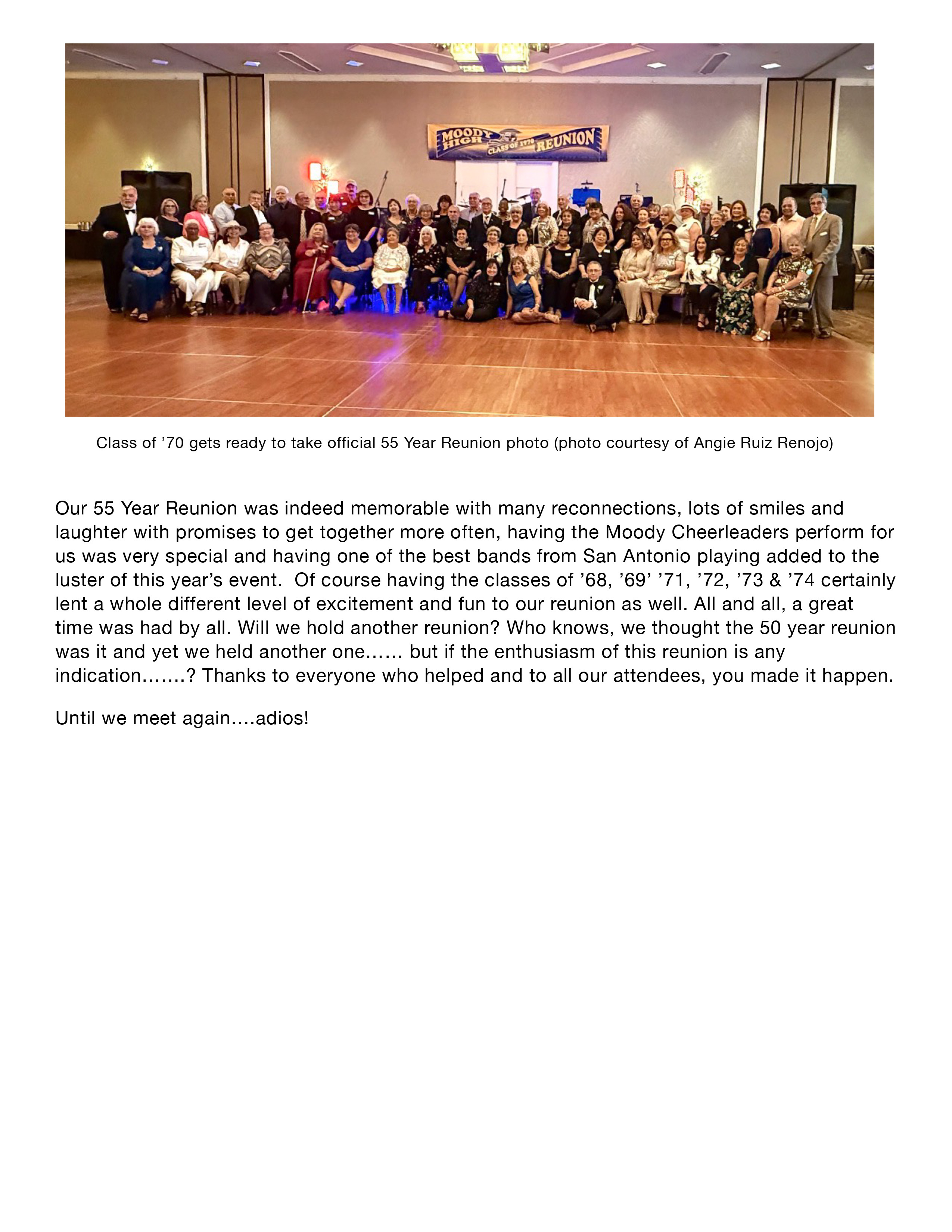 Thank you once again for helping make our 55 Year Reunion such a memorable event. Those memories will stay with us forever.