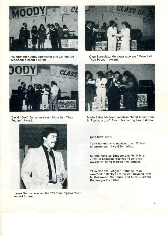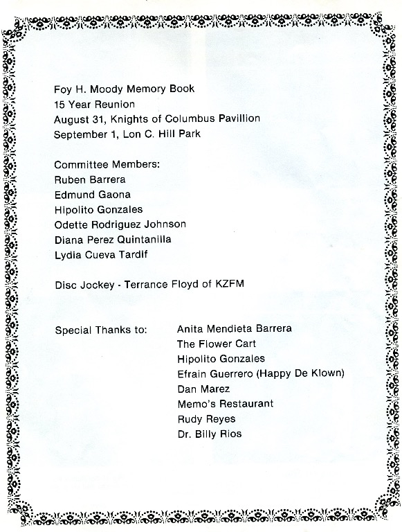 Photos from the reunion dance held February 29, 2020 at the Alexis Event Center in Corpus Christi, Texas. Numerous Young Men and Young Ladies social clubs were represented at the reunion dance. The dance hall came to life with the photo posters depicting club activties over the years for these groups from the 60's & 70's. The Prima Debs Girl's Club took home honors as the most represented club. The Bella Denise Girl's Club took home 2nd Place honors, the Paricutin Young Men's Club took 3rd place and the Grandiors took 4th place. There were over 300 people in attendance with a great band playing....Motif. Everyone was on the dance floor the whole evening. Thanks to all our friends/supporters, classmates and Moody Class of '70 Reunion Committee members for making this fundraiser such a great success and a whole lot of fun! More memories were certainly made with more to come...